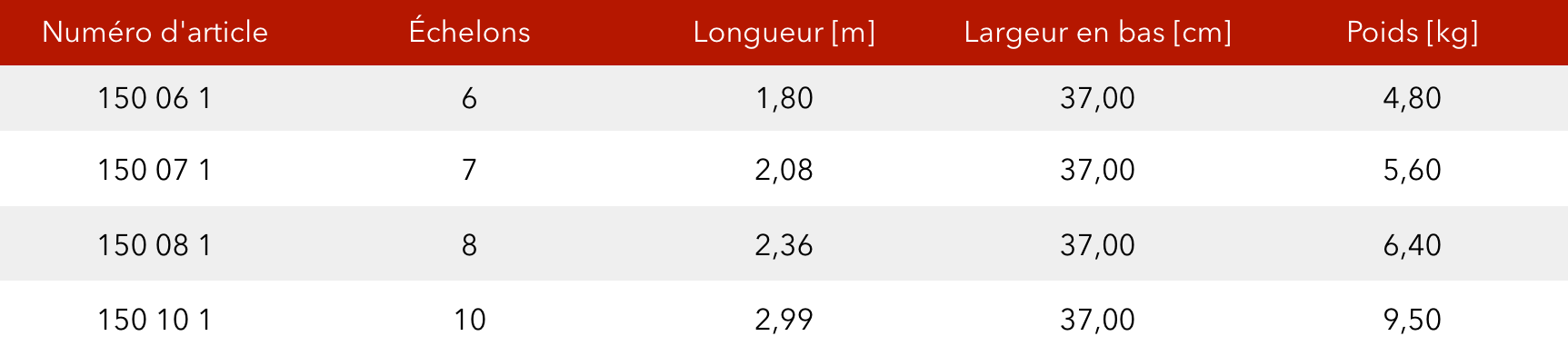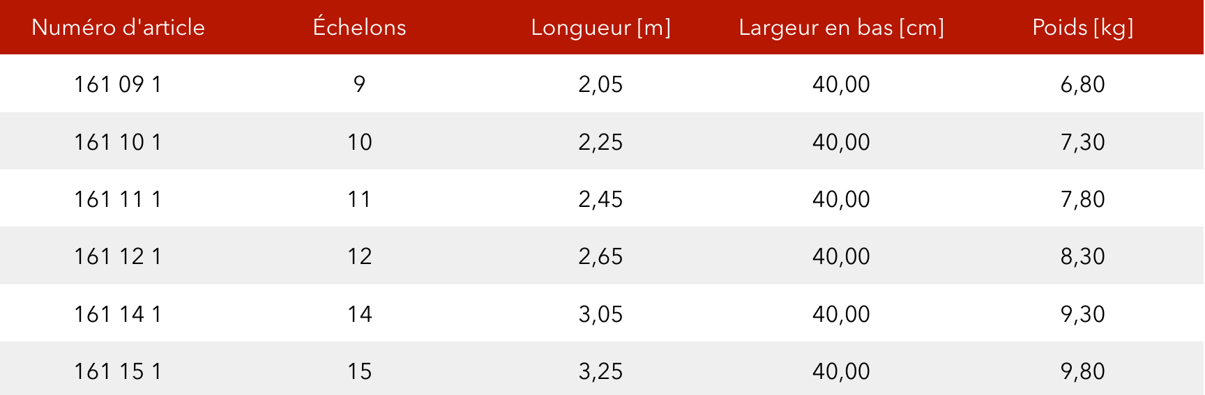 • Échelles conformes à la norme DIN 4567-3, échelles à usage spécial