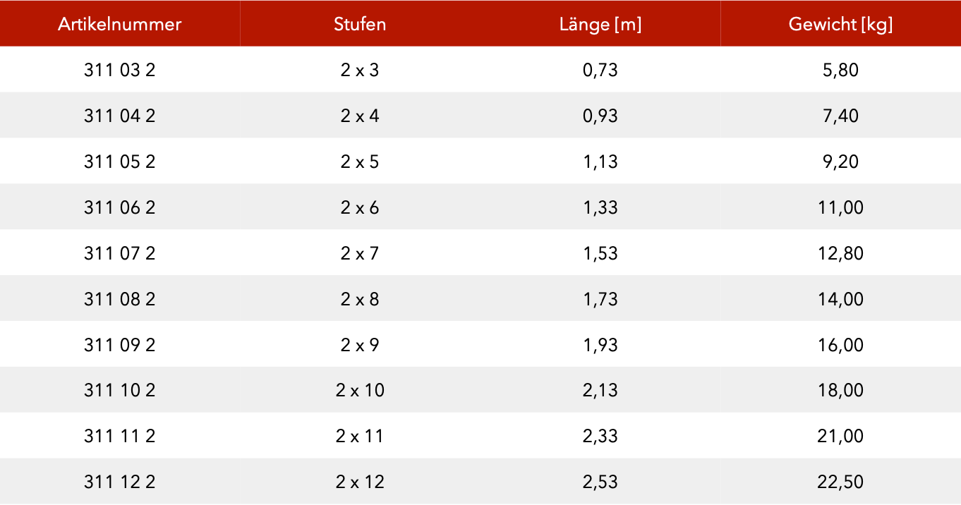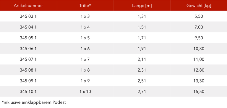 - Stufen-/ Sprossenabstand 25 cm