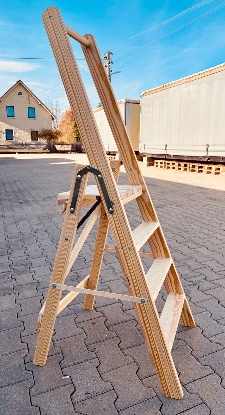 Unsere Leitern und Böcke werden nach den Anforderungen der EN 131 gefertigt. Abweichung zu Punkt 4.4 der EN 131-2: Die Holzteile bleiben naturbelassen, da eine Beschichtung weder sicherheitstechnisch erforderlich noch ökologisch sinnvoll ist. Sicherheit und Gebrauchstauglichkeit sind dadurch nicht beeinträchtigt. Alle Oberflächen sind sorgfältig bearbeitet und splitterfrei.